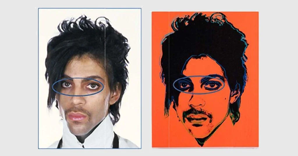 The original Lynn Goldsmith photograph (left) and Andy Warhol's Prince portrait of the musician (right), as reproduced in court documents.